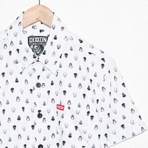 DIXXON Flannel Co Men's Skull Print Party Shirt Short Sleeve Size Small