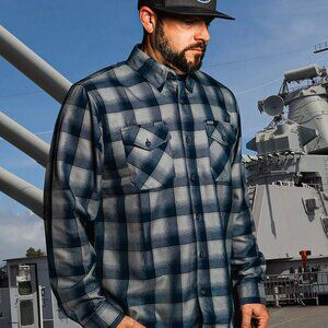 Inspired by the last great battleship of WWII - the USS Missouri, the Mighty Mo Flannel features an allover blue, gray, and black plaid pattern that offers a clean and classic design, while the signature D-Tech™ blend provides the comfort of soft to the touch flannel. Constructed to be breathable for the performance you demand, yet durable for the rugged lifestyle you live.