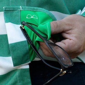 Men’s green and white stripe patterned flannel shirt