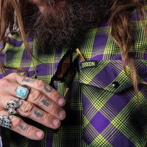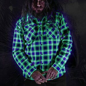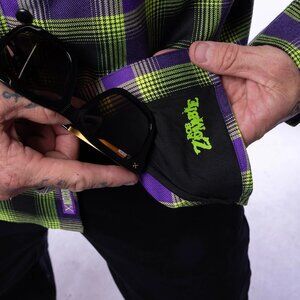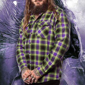 Crank it loud and raise some hell with the Rob Zombie Flannel, a killer collab built for the ones who live fast and dress louder. With its haunting mix of green, purple, and black plaid, this flannel brings a heavy dose of horror and horsepower to your everyday lineup.