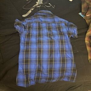 Stylish blue and black plaid shirt by Lux. Ideal for casual outings. Comfortable and trendy design.