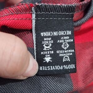 This is a women's flannel shirt by Dixxon on their fifty fifty style in size small. It features a collared neckline, button closure, long sleeves, and a red and gray buffalo plaid pattern. The shirt is made of polyester fabric and has a regular fit. It is designed with pockets, easy care, and suitable for all seasons. This button-up shirt is perfect for both casual and workwear occasions.