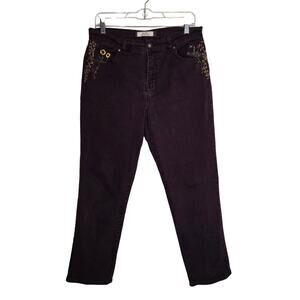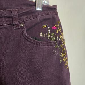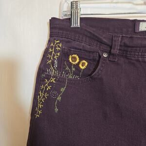 DIY Embroidered Purple Straight Leg Jeans Sunflower Floral Boho Hippie 30