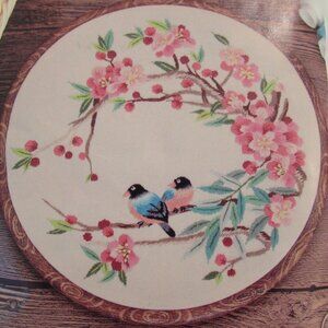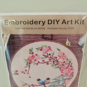 DIY Embroidery Art Kit Cream Birds Cherry Blossoms New
