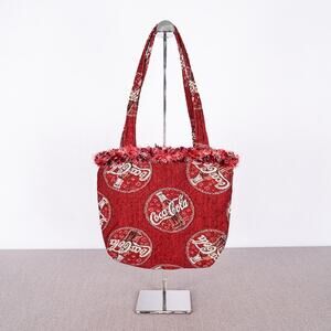 Pre-Owned: DIY Handmade Coca-Cola Fabric Handbag Quilted Lining Fringe Trim; Red;