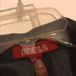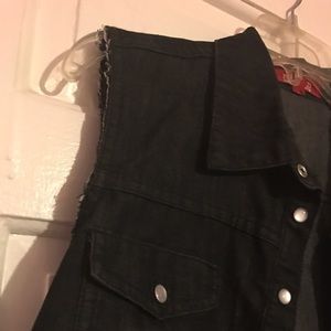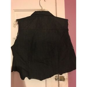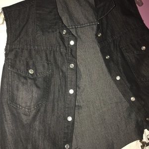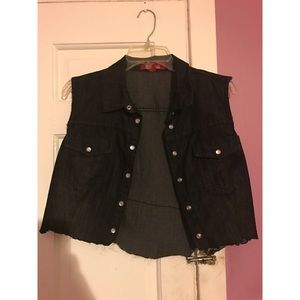 Black Jean Jacket From Forever 21 that I had cut into a vest years ago. Very cute! Size Large but fits M-L. (I cut it myself so be aware that the cutting is uneven)