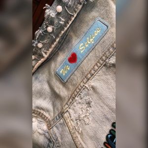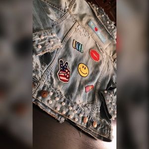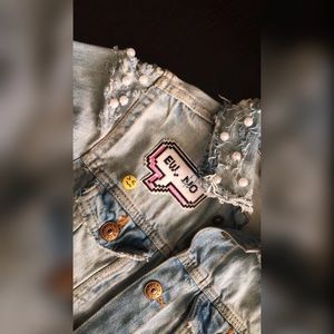 Jean Jacket Destress for a little girl 💕 Fun patches &* Pearl hand sew on 🤗