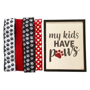 • 1 Wooden Sign: “My Kids Have Paws” (Rustic Farmhouse Style with Red Glitter Paw Print)