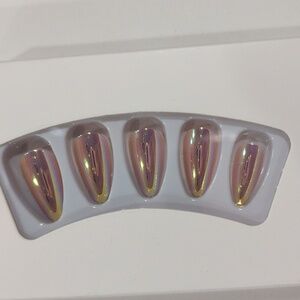 New in box. 3 pink nail sets - one with hearts, one matte, and one iridescent. The bundle also includes 150 silver butterfly nail jewels.