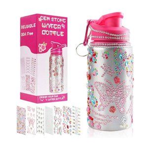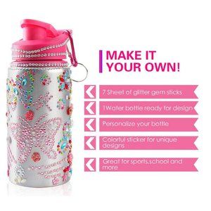 Decorate Your Own Glitter Gem Water Bottle, includes 7 sheets of Rhinestone Stickers!