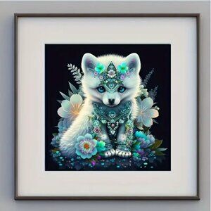 DIY White Fox 5D Diamond Painting Kit Wall Art (7.87"X7.87")