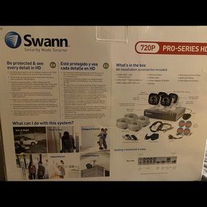 Slightly used DIY Swann security system. This system has a 1 TB hard drive and is designed for outdoor use. I only have 3 cameras. Let me know if there are additional questions.