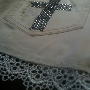 I made these shorts my self they are edgy and cute!! They have studs on one side and lace fabric on the other side. These are really cute for summer and very comfy :) The shorts you see in the picture are my shorts but I will make you your own just like these all I would need to know is your pant size and legth you would like them to be thank you!!