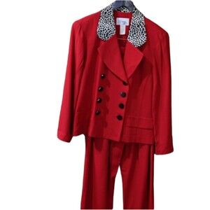 D.J. Summers Red Vintage 80s Pantsuit Mob Wife Funky Red Suit 10