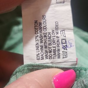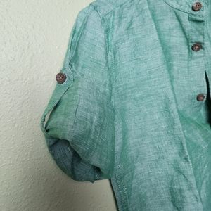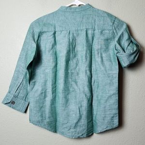 Boys size 9/10 Green linen button-down shirt. This is brand new without tags and in great condition! Sleeves can be rolled up and buttoned or worn down. R20
