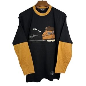 DJC Designer Jeans Co VTG NWT New York NYC Black Waffle Thermal Shirt Y2K Large