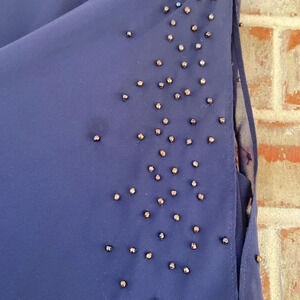Shoulder and sleeve area has shiny beads sewn on
