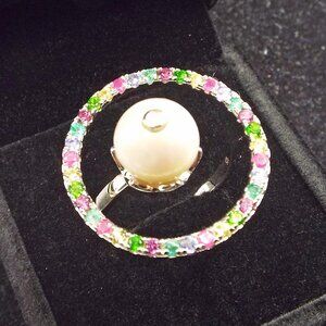 D'JOY "GALAXY" COLORFUL GEMSTONES CIRCLE W/ 9.5 MM NATURAL PEARL SZ. 11 RING 72