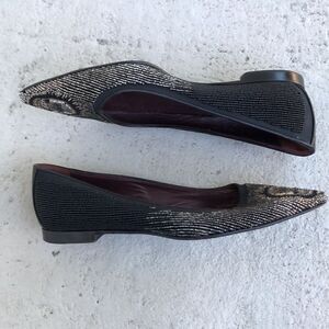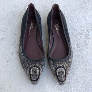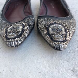 Black beaded skull pointy toe flats. Please look at the pictures. They are in good condition but not perfect.