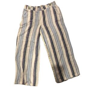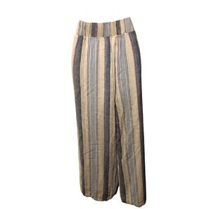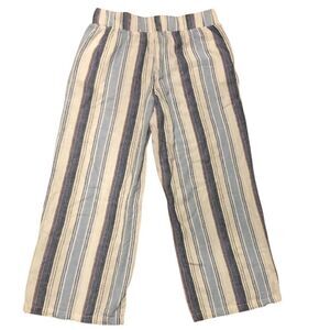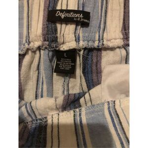 Definitions Lagenlook Boho Striped Linen Blend Pant a stylish and versatile addition to any woman's wardrobe. Made from a comfortable and breathable blend of rayon and linen, these pants feature a pull-on closure with an elastic waist size L