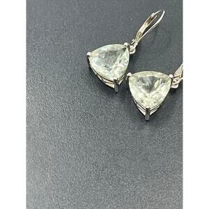 DK 925 Designer Sterling Silver Trillion Cut Green Amethyst Leverback Earrings