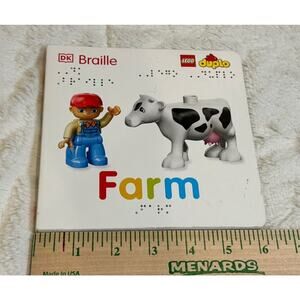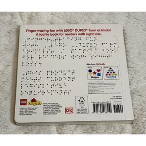 The product is a 2018 board book titled "Dk Braille: LEGO Duplo: Farm" by Emma Grange. It is a braille book in English that features LEGO Duplo farm scenes. The book is designed to educate children through interactive and tactile learning experiences, making it suitable for both educational and juvenile nonfiction genres. Published by Dorling Kindersley Publishing, Incorporated, this book is a great resource for children interested in LEGO, farms, and learning through touch and visual exploration.