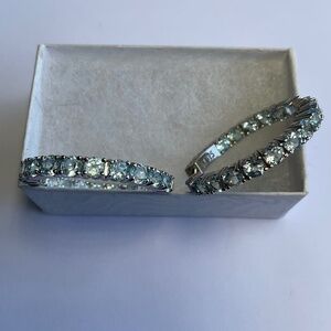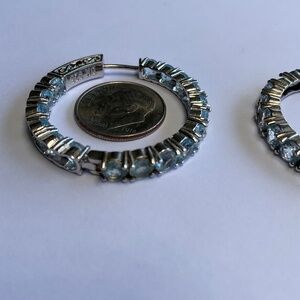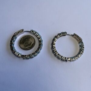 DK Sterling Silver Hinged Hoop Earrings W/ stones. 1 3/8 inch diameter