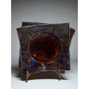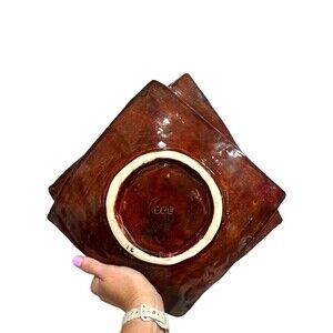 DKE Studio Pottery Tray Trinket Serving Dish Plate Brown Blue Glaze Leaf 21