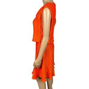DKNY $129 NWT Orange Pleated Side Tie Overlay Flared Mini Dress SZ 2