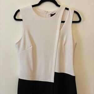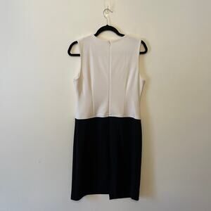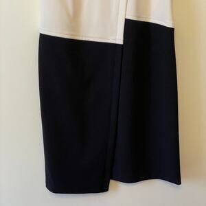 DKNY 4 black white fitted dress colorblock contemporary Corpcore midi pencil