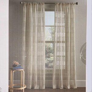 DKNY 50 x 95 Shoreline Sheer Beige Tan Natural Curtains Drapes Striped Stripes