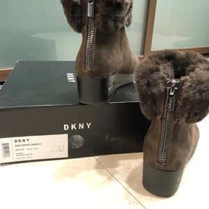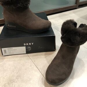 DKNY "Abri" Faux Fur/Suede Wedge Bootie - Brown Size 6.5