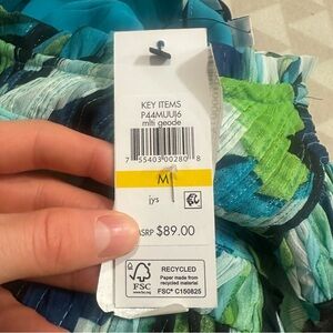DKNY Abstract Print Paneled Chiffon Top green blue