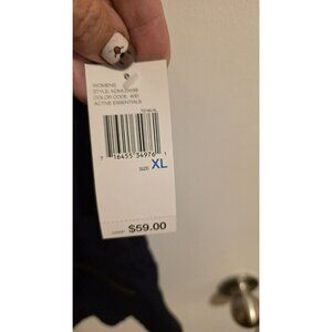 The DKNY Active Vest is a stylish activewear piece designed for women in size XL. Made from 100% cotton with a blend of fabric, this mid-length vest features a colorful blue/purple color design, perfect for various occasions like walking, cycling, golf, fishing, and hiking. With a zip closure, hood design, this lightweight vest is both practical and fashionable. The DKNY brand ensures quality and style, making it a versatile choice for outdoor activities in all seasons. Msrp $56