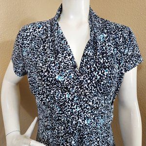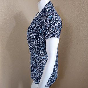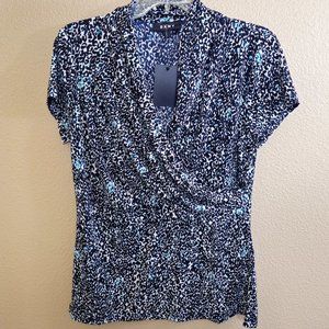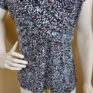 DKNY Animal Print Short Sleeve Jersey Faux Wrap V-neck Blouse~NEW~Size L