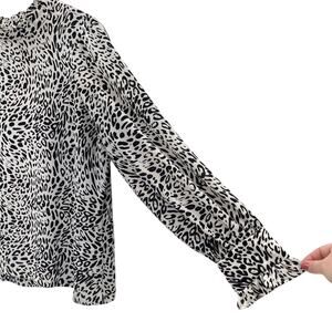 DKNY Animal Printed Ruffle-Neck Ling Sleeve Business Casual Boho Blouse Size XL