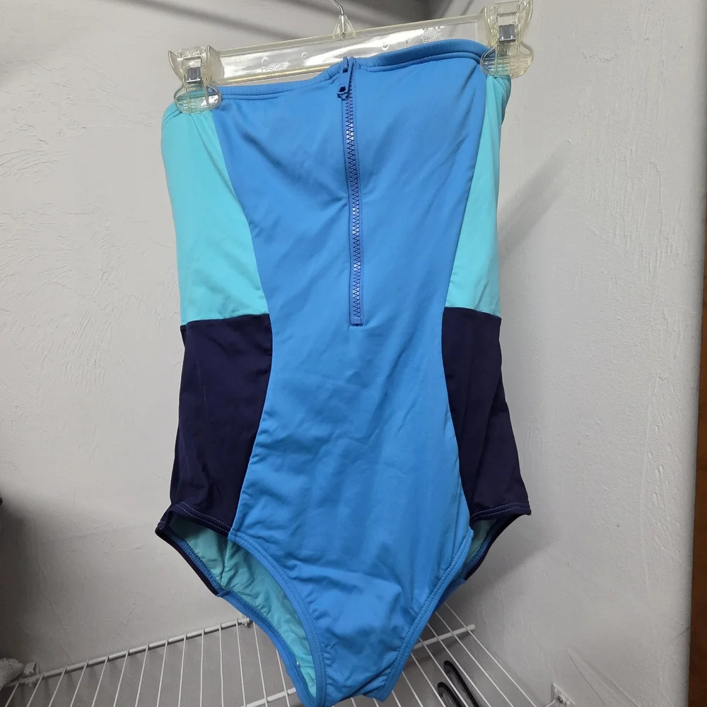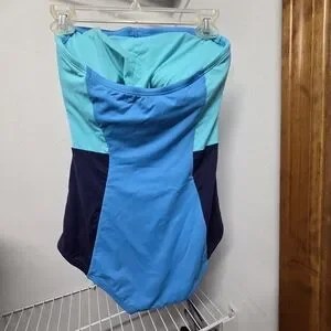 Stylish DKNY swimwear in aqua and blue. Perfect for a day at the beach. Size 10. Measurements lying flat - 22 L x 13 W. Original straps included. Freshly washed. Worn once. From a smoke and pet free home.