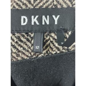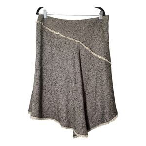 DKNY Asymmetric Hem Herringbone Skirt Knee Length Academia Size 12 Wool Blend