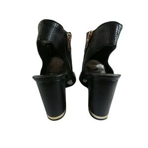 From DK Y come these amazing perforated genuine leather boots in rich black! Featuring an open toe and chunky heel, the heel with a gold detail, inside zipper! Really a fun pair of heels! 3.5" heel, Size 8.5M, Excellent! Superb EUC Condition! **ABSOLUTELY GUARANTEED CONDITION: EUC MINTY-EXCELLENT TO LIKE-NEW, by Lily @HauteClub!***