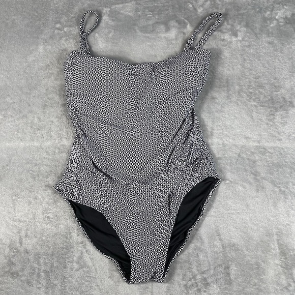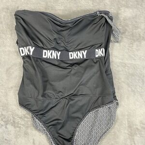 DKNY Bandeau One Piece Swim Suit Women's XXL Black White Geo Print