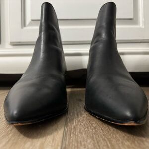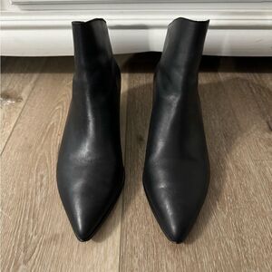 Pointed-toe ankle booties with exposed back zipper closure