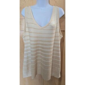 DKNY Beige & Cream Striped 100% Silk V-Neck Sleeveless Tank Top Size L