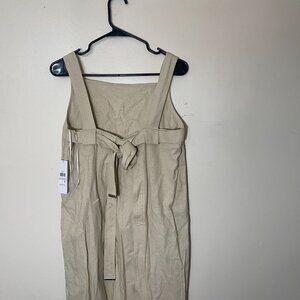 DKNY Beige Sleeveless Linen-Blend Midi Dress