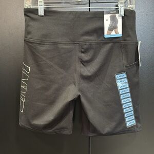 DKNY Bike Shorts, 7” inseam,hip pockets,hidden waist pocket,silver sparkle logo