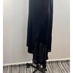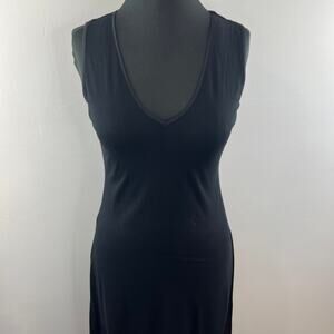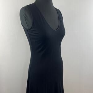DKNY Black Cotton Blend V-Neck Sleeveless Asymmetric Hem Midi Cocktail Dress XS