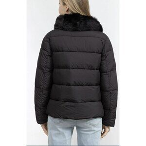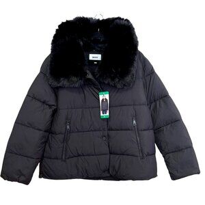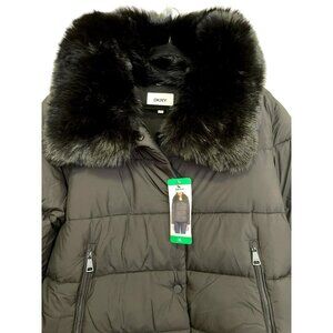 DKNY Black Down Puffer Jacket Faux Fur Winter Coat Sz XL NWT