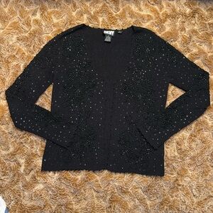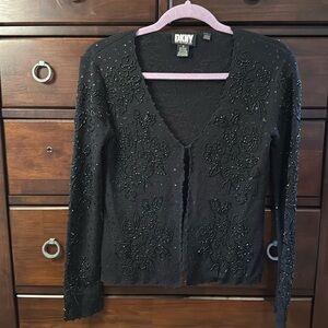 Elevate your style with this DKNY black embellished sweater. Perfect for any occasion, this elegant piece adds a touch of sophistication to your wardrobe.