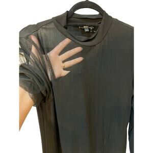 DKNY Black Evening Dress in Women’s Large (L). Featuring an asymmetrical sheer sleek, gothic-inspired design, this dress is perfect for evening events, parties, or formal occasions. Crafted with high-quality fabric, it combines comfort and elegance effortlessly.