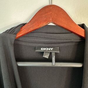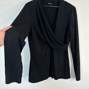 Item: DKNY Black Faux Wrap Ruched Longsleeve Top Womens Large Minimalist Stretch Chic