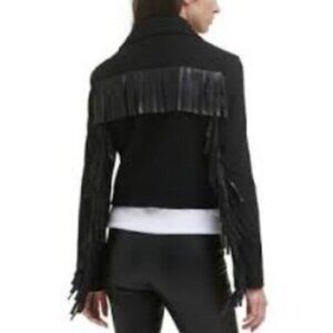DKNY Black Fringe Moto Jacket SZ S NWT